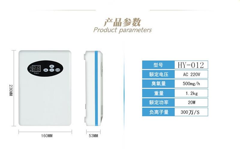 江門(mén)市江海區(qū)雷迅太陽(yáng)能科技有限公司在我司采購(gòu)了300臺(tái)HY-104-500mg的臭氧發(fā)生器,此款臭氧發(fā)生器主要是家用型臭氧機(jī),主要用于臥室、廚房、餐廳、客廳的空間消毒,飲水機(jī)和自來(lái)水誰(shuí)消毒,通過(guò)對(duì)水體消毒之后再對(duì)果蔬菜消毒。 以下是HY-104-500mg家用臭氧機(jī)的產(chǎn)品簡(jiǎn)介: 一、HY-104500mg臭氧發(fā)生器: (一)產(chǎn)品參數(shù): 1、設(shè)備名稱(chēng):臭氧發(fā)生器(家用型臭氧機(jī)) 2、型號(hào):HY-104-500mg 3、品牌:廣加環(huán) 4、臭氧產(chǎn)量:500mg/h 5、尺寸:長(zhǎng)*寬*高230*160*53mm 6、電源:220V/50HZ 7、負(fù)離子量:300萬(wàn)/S 8、功率:20W 9、重量:1.2KG 10、噪音:20db 11、控制方式:按鍵式 12、顏色分類(lèi):黃色、綠色、藍(lán)色、黑色 13、風(fēng)量:50立方米/小時(shí)以下 14、適用消毒空間:30-60立方米 15、工作原理:負(fù)離子、臭氧 16、電源方式:交流電 17、適用對(duì)象:家用房間消毒、果蔬菜消毒 18、設(shè)備質(zhì)保期:12個(gè)月 19、規(guī)格:臺(tái)式 (二)產(chǎn)品特點(diǎn): 1、風(fēng)冷,單冷設(shè)計(jì) 2、空氣、水處理兩用 凈化空間:30-60立方米;水處理0.2-0.5T/H 3、外殼為注塑 (三)產(chǎn)品參考圖: